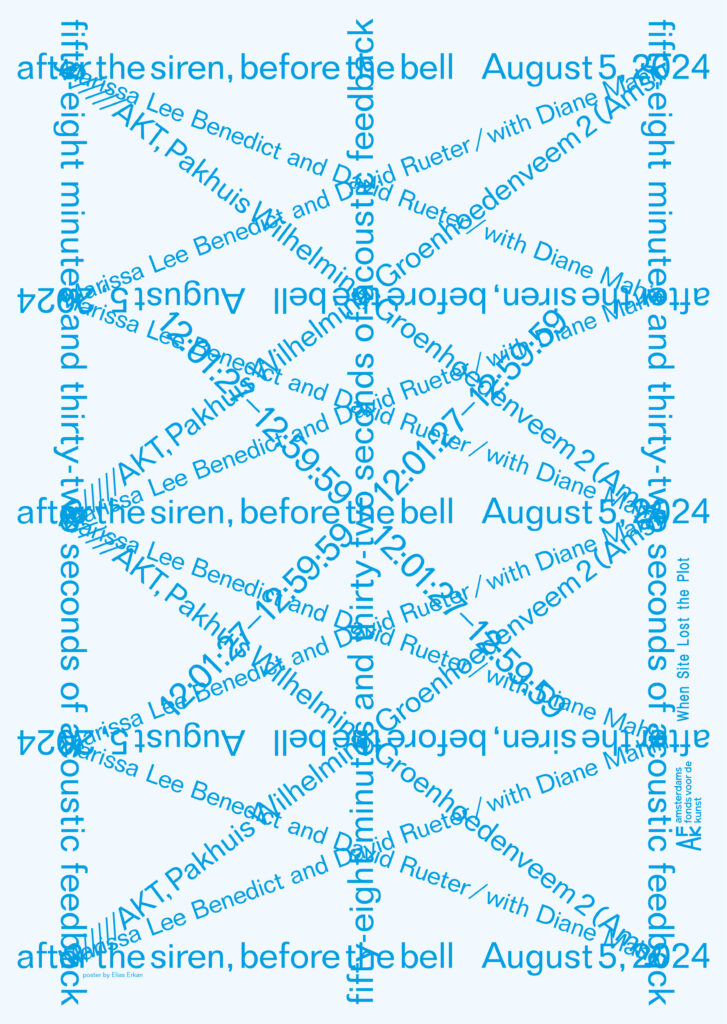 Performances occured on the first Monday of the month at 12:01:27, coinciding with Amsterdam’s public siren tests across the city.